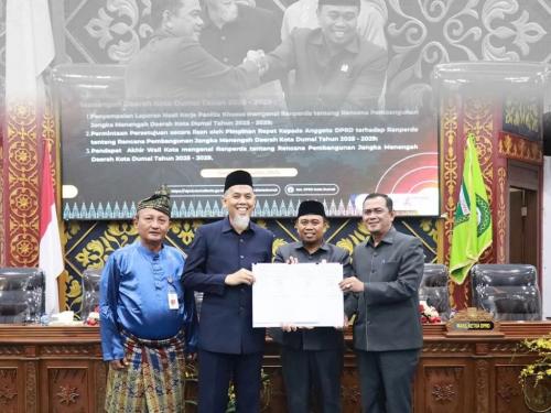 Senin, 04-08-2025 - 15:58:23 WIB Mediasindonews.com I Dumai - Dewan Perwakilan Rakyat Daerah (DPRD) Kota Dumai menggelar Rapat Paripurna Pembicaraan Tingkat II pada Senin (4/8/2025). Rapat ini menghasilkan persetujuan terhadap Rancangan Peraturan Daerah (Ranperda) tentang Rencana Pembangunan Jangka Menengah Daerah (RPJMD) Kota Dumai tahun 2025-2029.
