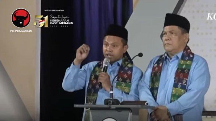 Abdul Wahid dan SF Hariyanto hadir mengenakan baju nuansa merah. Senyum merekah dari wajah SF Hariyanto saat namanya disebut oleh Hasto Kristiyanto. Pun demikian dengan