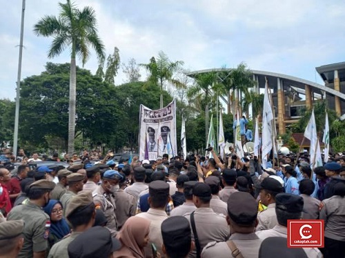 9 tuntutan tersebut disampaikan langsung oleh massa aksi di depan Gubernur Riau, Syamsuar.