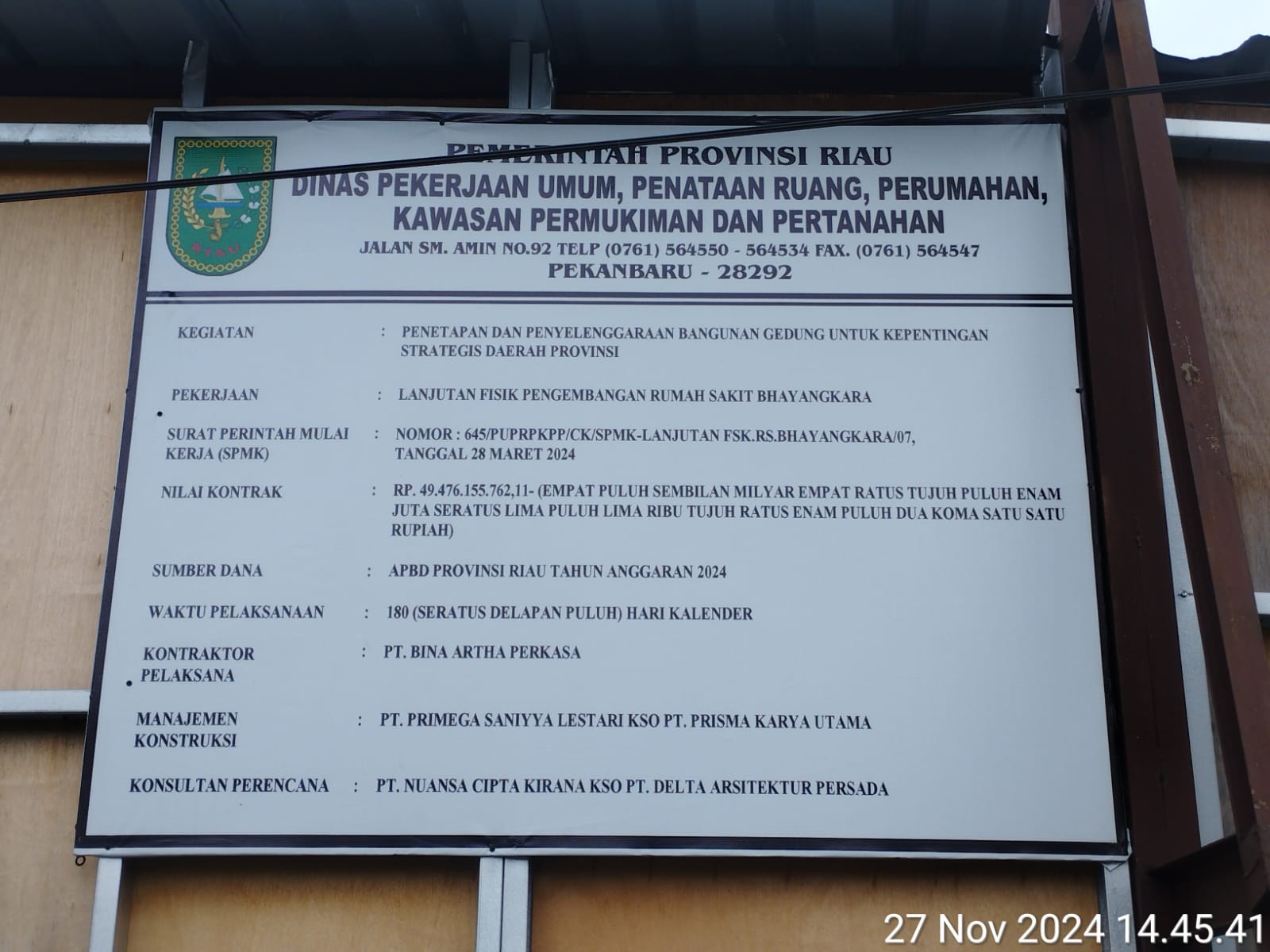 Tindak lanjut Keselamata Kerja PT.BAP Pembangunan Rumah Sakit Bayangkara Pekanbaru tidak berjalan