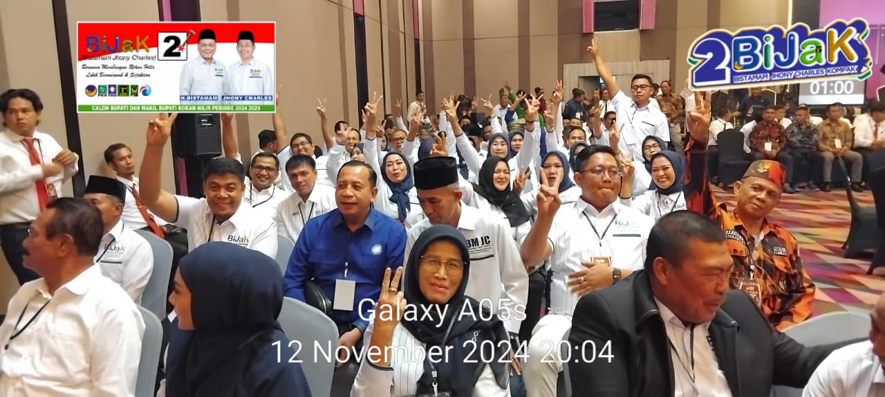 Mediasindonews.com I Pekanbaru - Pasangan calon Bupati dan Wakil Bupati Rokan Hilir, H. Bistamam dan Jhony Charles, disambut meriah saat memasuki ballroom Hotel The Zuri di Kompleks Transmart, Jalan Soekarno – Hatta, Kota Pekanbaru. Kehadiran mereka dalam debat publik yang ditaja oleh Komisi Pemilihan Umum Kabupaten Rokan Hilir ini menarik perhatian masyarakat dan pendukung yang antusias menyaksikan langsung pasangan calon tersebut.