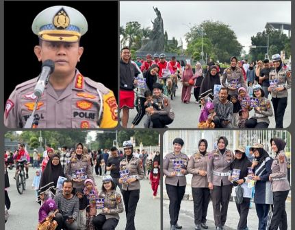 Mediasindonews.com | Pekanbaru - Ditlantas Polda Riau melaksanakan kegiatan Cooling System di area Car Free Day Jalan Jenderal Sudirman, Pekanbaru, Minggu (04/02/24). Kegiatan cooling system ini bertujuan mewujudkan pemilu 2024 berjalan aman, damai dan sukses.