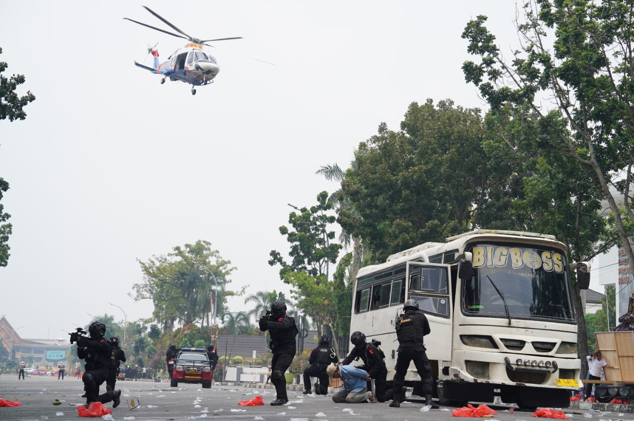 Simulasi SISPAMKOTA Digelar di Jalan Gajah Mada Pekanbaru oleh Polda Riau