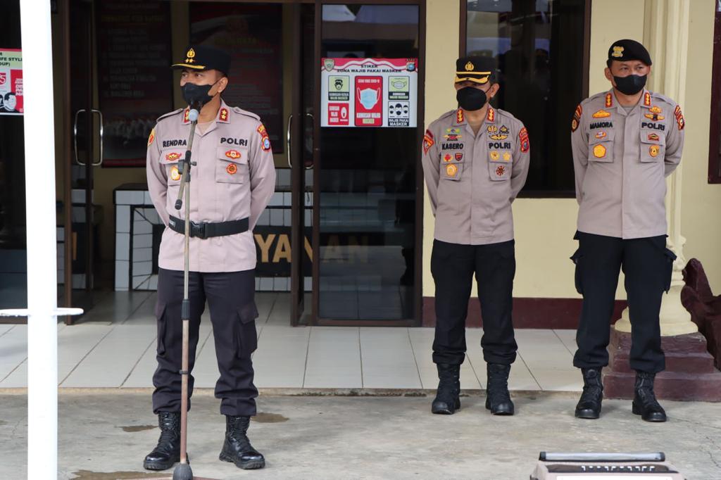 TELUK KUANTAN - Polres Kuantan Singingi melakukan Apel Pengamanan Event Nasional Pacu Jalur Tradisional Kabupaten Kuantan Singingi Tahun 2022 di Lapangan Apel Polsek Kuantan Tengah Polres Kuantan Singingi, minggu (21/08/2022) pagi pukul 07.30 WIB.Kegiatan tersebut dipimpin oleh Kapolres Kuantan Singingi AKBP Rendra Ohkta Dinata S.I.K., M.Si., serta diikuti oleh Karo Ops Polda Riau Kombespol R. Kasero Manggolo, MH, M.Si, Dir Pamobvit Polda Riau Kombespol Ahmad Mamora, S.I.K., Dir Pol Airud Polda