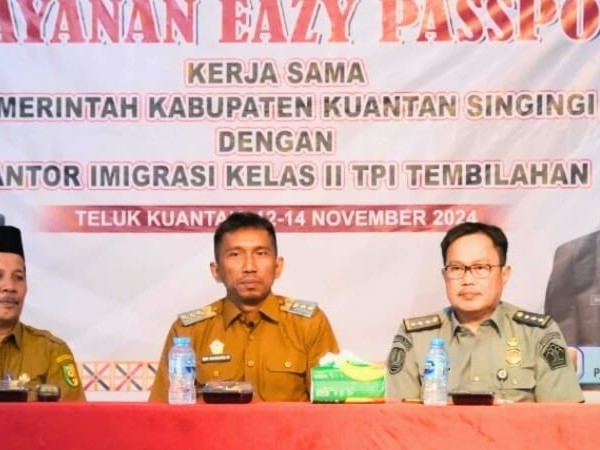 Pada sambutannya, Pjs Bupati Kuansing, Sri Sadono Mulyanto menyampaikan bahwa Pelayanan Eazy Passport tersebut merupakan bagian dari kerjasama Pemerintah Kabupaten (Pemkab) Kuansing melalui Dinas PTSP dengan Kantor Imigrasi Kelas II TPI