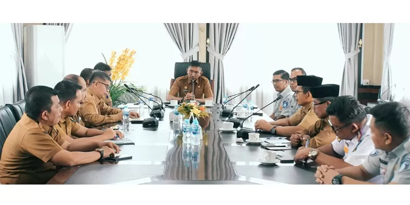 Mediasindonews.com | Kuansing - Penjabat sementara (Pjs) Bupati Kuantan Singingi (Kuansing) drg. Sri Sadono Mulyanto, M. Han menerima kunjungan dari Jasa Raharja cabang Riau Provinsi Riau, Senin (04/11) Siang, di Ruang Rapat Kantor Bupati Kuansing.