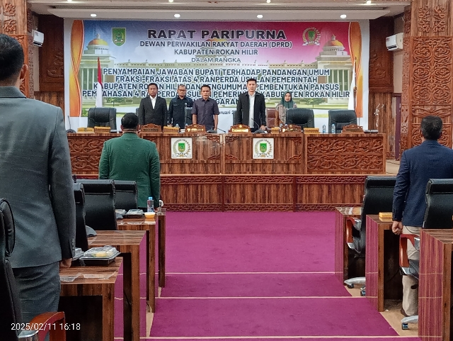 Penyampaian ini berlangsung dalam Rapat Paripurna DPRD pada Selasa (11/2/2025) di Aula Rapat Kantor DPRD Rohil, Jalan Lintas Pesisir Batu Enam, Bagansiapiapi,