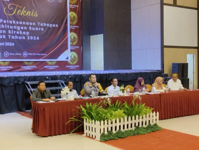 Mediasindonews.com | Dumai - Kapolres Dumai AKBP Dhovan Oktavianton, S.H, S.I.K, M.Si menghadiri dan turut serta dalam Bimbingan Teknis (Bimtek) Pemantapan Pemungutan dan Penghitungan Suara dengan menggunakan Sistem Informasi Rekapitulasi Suara (SIREKAP) pada Pemilu 2024.