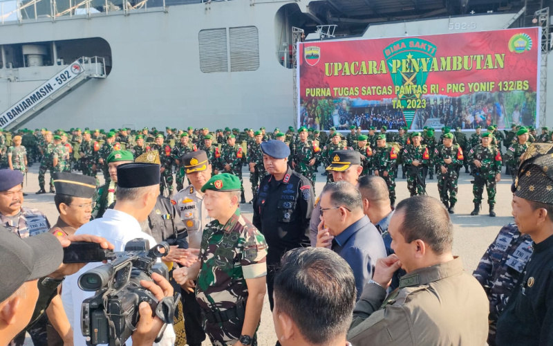 Mediasindonews.com | Dumai - Kamis (14/9/2023) pagi, bertempat di Dermaga C Pelabuhan Pelindo Dumai, Jalan Datuk Laksamana, Kelurahan Buluh Kasap, Kecamatan Dumai Timur, Kota Dumai, dilaksanakan upacara penyambutan Satgas Pengamanan Perbatasan RI-PNG Satgas Batalyon Infantri 132/Bima Sakti (BS).