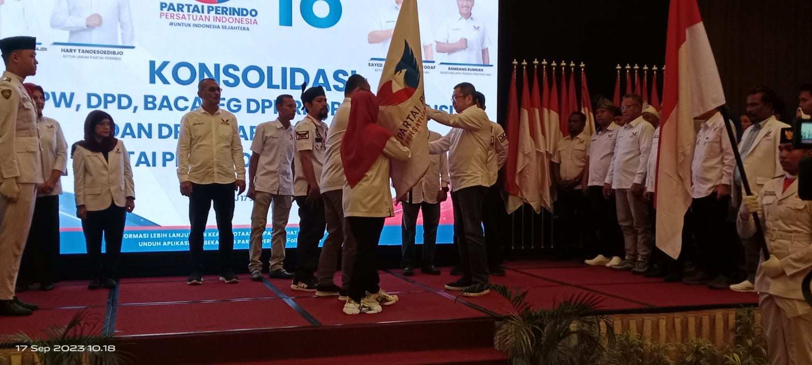 Mediasindonews.com | Dumai – Ketua Umum Partai Perindo (Persatuan Indonesia) Hary Tanoesoedibjo melakukan kunjungan ke propinsi Riau dalam rangka konsolidasi DPW, DPD, Bacaleg DPR RI, DPRD Propinsi dan DPRD Kabupaten/Kota.Selain melakukan konsolidasi, Hary Tanoesoedibjo juga melantik kepengurusan DPW propinsi Riau yang di pimpin Sayed Abubakar Assegaf.Kehadiran Ketum Hary Tanoesoedibjo disambut kader dan simpatisan partai Perindo di hotel Primeir jalan Jendral Sudirman kota Pekabaru