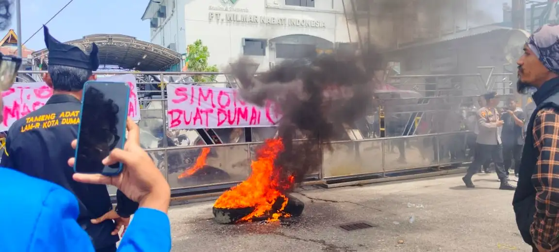 Unjuk Rasa di Dumai, Api Menyala Depan Gate PT Wilmar