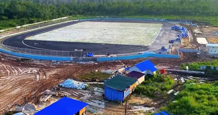 Mediasindonews.com I Dumai - Pembangunan stadion olahraga yang terletak di Jalan Arifin Achmad, Kelurahan Tanjung Palas, Kecamatan Dumai Timur, Kota Dumai hingga kini masih berlanjut proses pengerjaan.