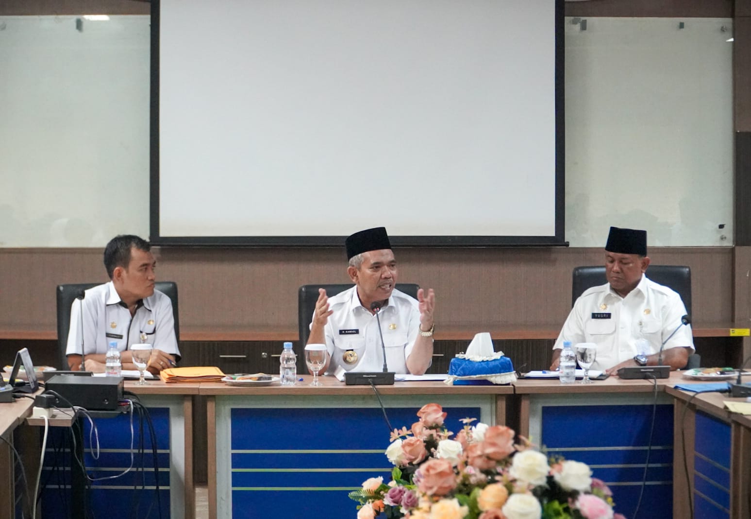 Mediasindonews.com | Bangkinang Kota - Setelah dilakukan Pelantikan Penjabat (Pj) Bupati Kampar pada tanggal 23 Mei 2022 di Ruang Pauh Janggi Gubernuran Pekanbaru, Hari ini  Rabu, (25/5/2022) Pj Bupati Kampar melakukan rapat perdana  bersama Sekretaris Daerah Kabupaten Kampar, Drs. H. Yusri, M.Si beserta Staf Ahli dan para Asisten Bupati Kampar, Sekretaris Dewan (DPRD) Kampar Ramlah, SE. M.Si Seluruh Kepala Organisasi Perangkat Daerah (OPD) di Lingkungan Pemerintah Kabupaten