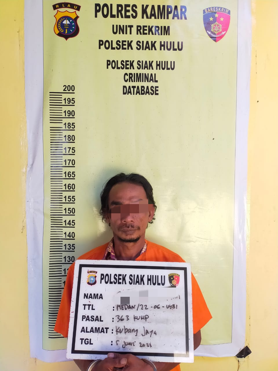Mediasindonews.com | SIAK HULU - Jajaran Polsek Siak Hulu berhasil menangkap pelaku pencurian dengan pemberatan, tak tanggung-tanggung Polsek Siak Hulu kejar pelaku sampai ke Sumatra Utara, Jumat (3/6/2022) sekira pukul 14.30 WIB. Pelaku adalah SS (41) warga Dusun III Bencah Pudu Permai Desa Kubang Kecamatan Siak Hulu Kabupaten Kampar. Ia membongkar rumah korban Murni Maryati (51) pada Jumat (13/5/2022) sekira pukul 15.00 WIB lalu di Jl. Raya Kubang Desa Kubang Jaya Kecamatan Siak Hulu. Dari