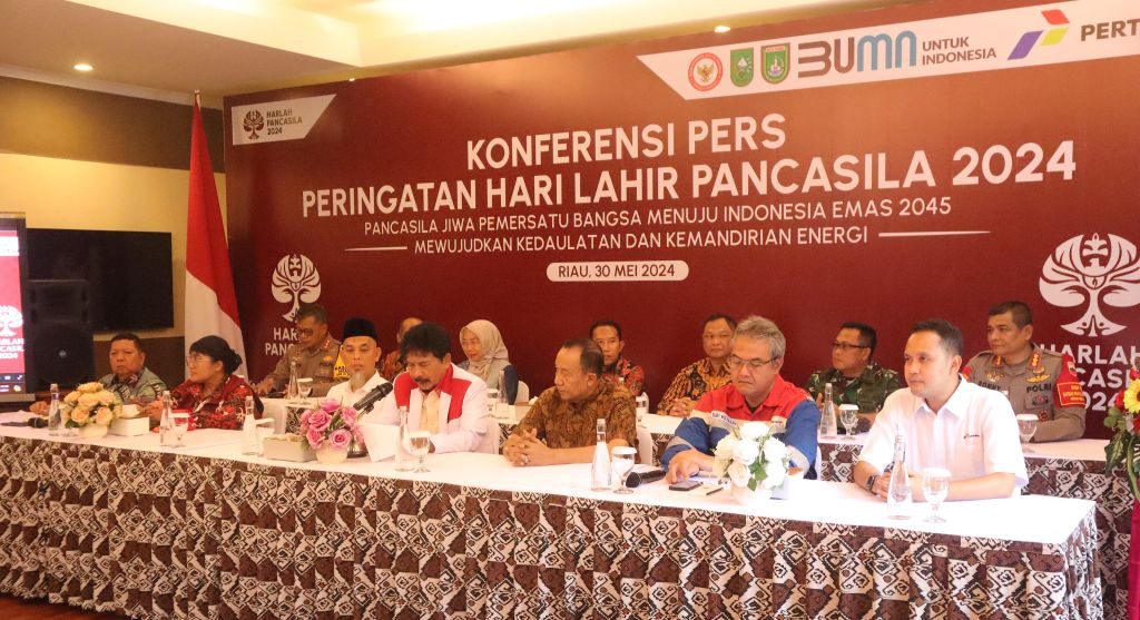 Mediasindonews.com | DUMAI – Karo Ops Polda Riu Kombes.Pol. Roni Lumban Gaol di Dampingi Kabid Humas Kombes. Pol. Hery Murwono dan Kapolres Dumai Hadiri Konferensi Pers peringatan hari lahi Pancasila 2024 . Di di Gedung Dumai Country Club (DCC), Bukit Mayang, Komplek Perumahan PT. Pertamina Hulu Rokan (PHR) Kota Dumai. Kamis (30/5/24)