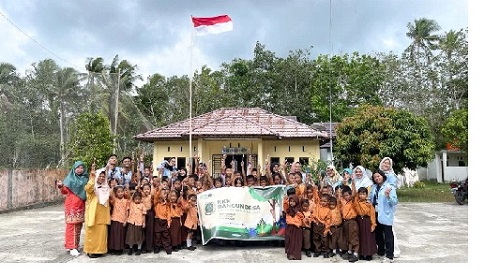 Mahasiswa KUKERTA UNRI di Desa Sukamaju Bantan Bengkalis Edukasi Siswa Cara Sikat Gigi yang Baik dan Benar