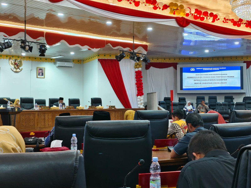 Mediasindonews.com I Kampar - Wakil Ketua DPRD Kabupaten Kampar, Zulpan Azmi, memimpin Sidang Paripurna pada Kamis (26/09/2024) yang membahas pembentukan dan penetapan fraksi-fraksi DPRD masa jabatan 2024-2029.