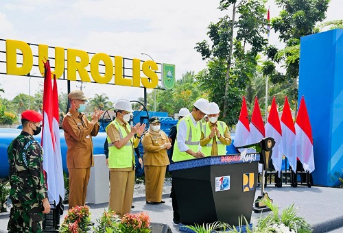 Peresmian SPAM Durolis ini, ditandai dengan penandatanganan prasasti dan pemutaran keran saluran SPAM Durolis oleh Presiden Republik Indonesia didampingi Menteri Sekretaris Negara Pratikno, Menteri PUPR Basuki Hadimuljono, Menteri BUMN Erick Thohir, Gubernur Riau Syamsuar, Bupati Rokan Hilir Afrizal Sintong, Bupati Bengkalis Kasmarni, dan Wali Kota Dumai H. Paisal.